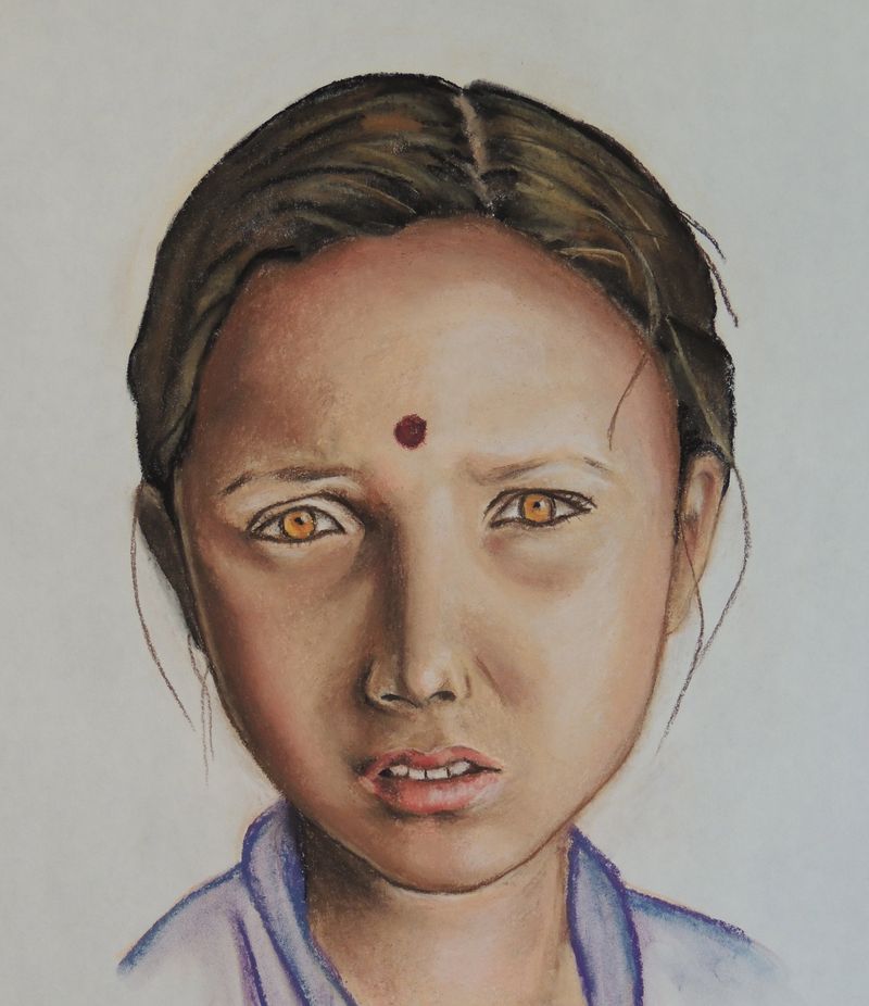 I did this portrait with soft pastels on very fine black sand paper. I loved working with the soft pastels even more than the hard pastels!