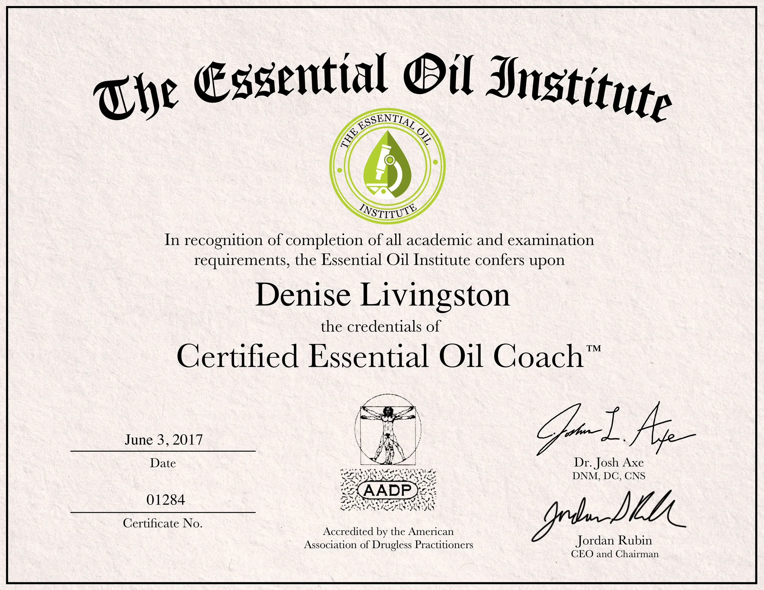Certified Essential Oils Coach from the Essential Oils Institute